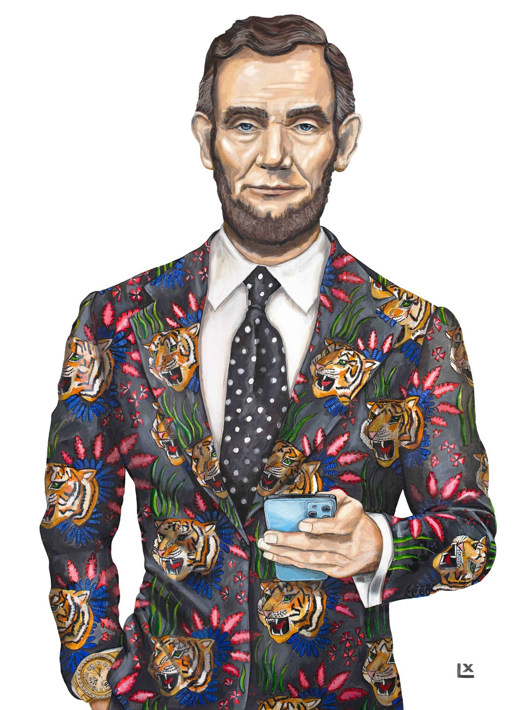 This tie has 56 polka dots representing Abraham Lincoln's 56 years. Polka dots evoke a youthful whimsy. Lincoln had a wonderful sense of humor and loved to laugh.