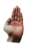 Here, Ali raises his open hand in prayer. Ali's dedication to his muslim faith and his activism are represented in this gesture of prayer.