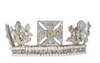 This crown was made in 1820 for King George IV. His advisors immediately deemed the crown “too feminine” for him. The crown bears roses, thistles and shamrocks, the floral symbols of England, Scotland and Ireland respectively. It is made with more